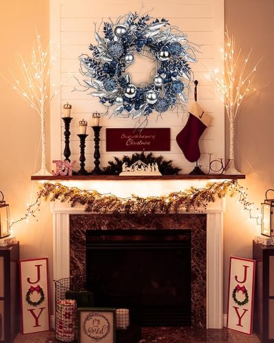 Couronne de Noël pour Porte - Couronne de l'Avent Bleue avec Boules et Branches - Décoration de Table - Diamètre : 40 cm