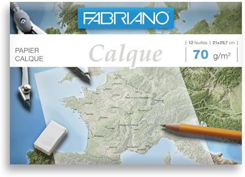 FEDRIGONI 46348 Papier calque Fabriano dessin industriel crayon encre 70 g A4 pochette 12 feuilles 297 x 210 mm Blanc