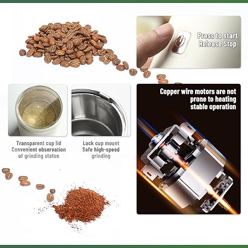 Moulin à Café Électrique, Moulin à Épices, Moulin à Café Électrique Avec Lame En Acier Inoxydable 304, Adapté Aux Grains De Café, Épices, Herbes, Céréales, Noix, Moulin à Café