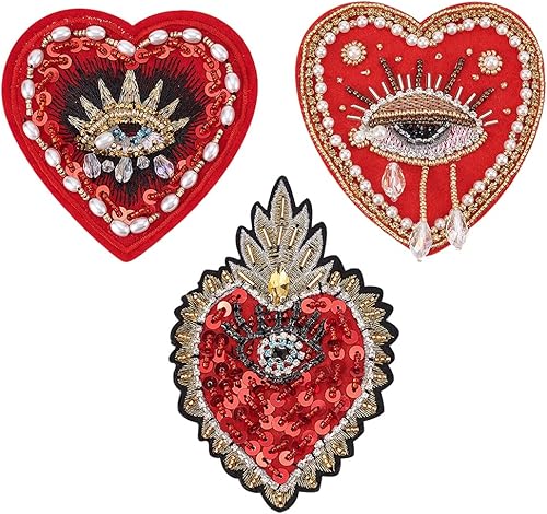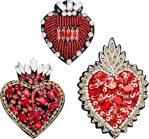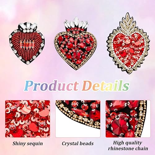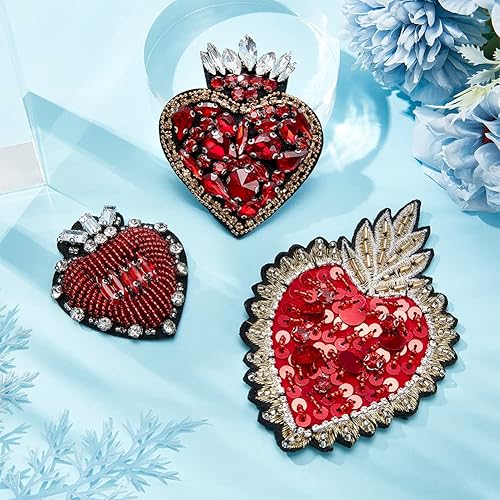 INFUNLY Patchs en forme de cœur avec perles en strass - 3 styles - À coudre sur les vêtements, jeans, vestes, sacs à main, chaussures