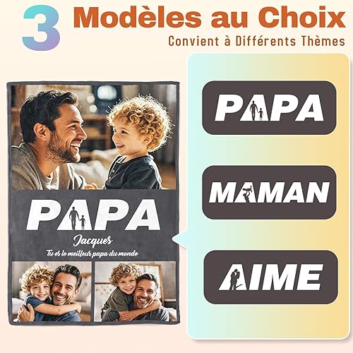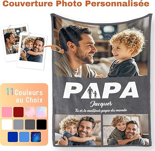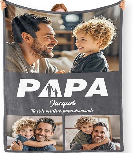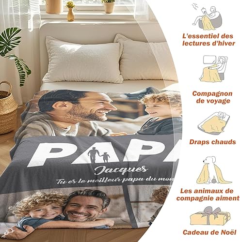 Bemaystar Cadeau Fête des Pères-Plaid Personnalisé Cadeau Personnalisé, Couverture Personnalisée, Cadeau Papa Idée Cadeau Fête des Pères, Cadeau Anniversaire Papa