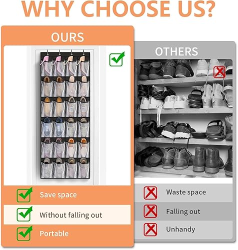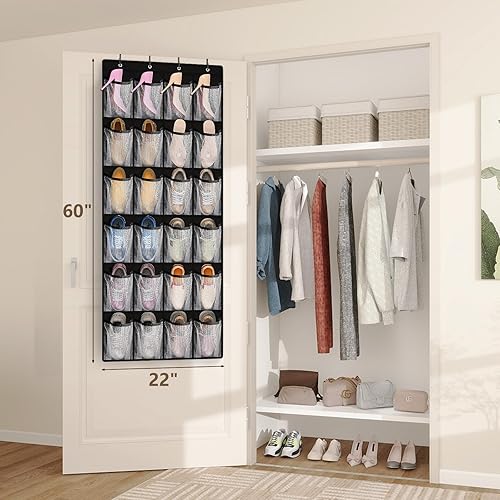 Fonyiunce Rangement Chaussures Suspendue, Sac de Rangement Suspendu avec 24 Poches, Rangement Suspendue sur la Porte, avec Crochets Métalliques, pour Chambre à Coucher, Salle de Bain