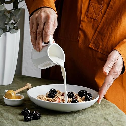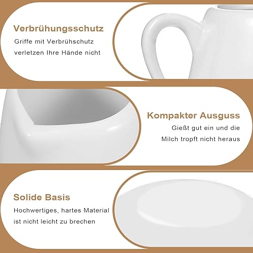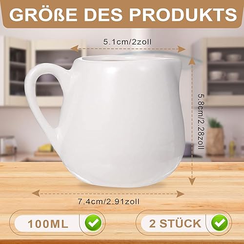 LATRAT Lot de 2 mini pots à lait en céramique blanche avec poignée - Petit pot à café, lait, sauce de cuisine, petit pichet à lait - 100 ml
