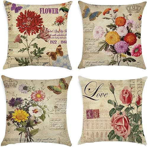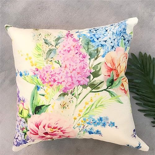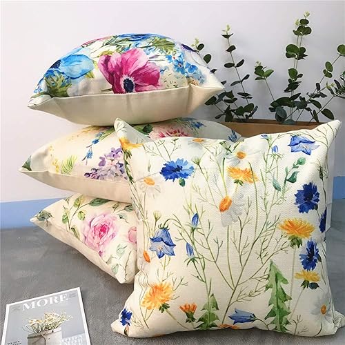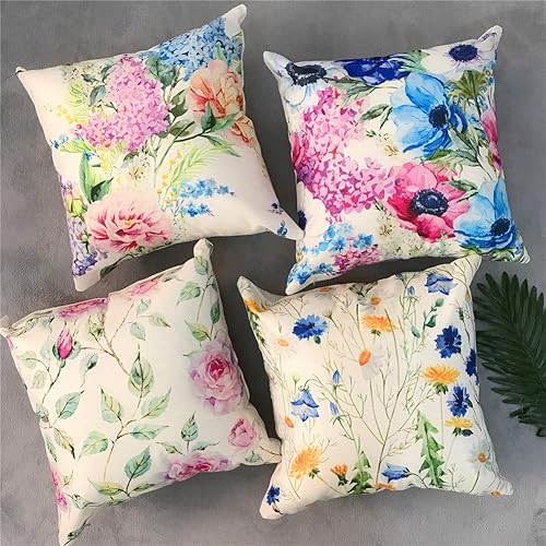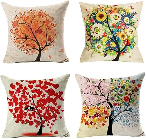 Freeas Housse De Coussin, Lot de 4 Tropical Plantes en Coton et Lin Couvre-lit Taie d'oreiller Coque carré Maison Housse de Canapé 45 x 45 cm
