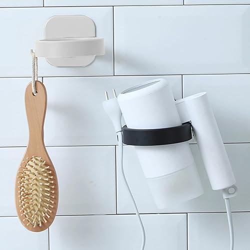 Okaywork Support seche Cheveux Mural, Plastique Support de sèche-Cheveux sans percer, Support de sèche-Cheveux, Support Autocollant sans percer, Support de sèche-Cheveux, Support Mural (Blanc)