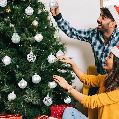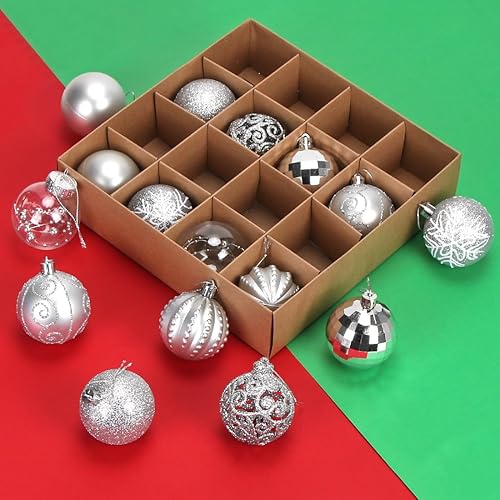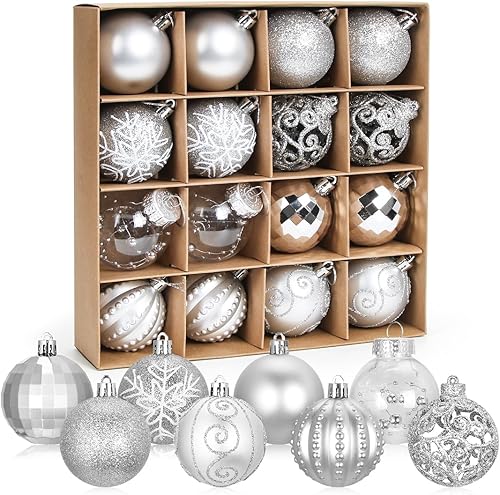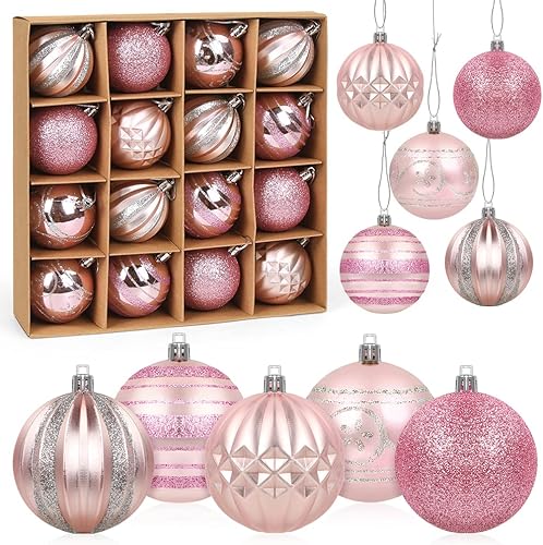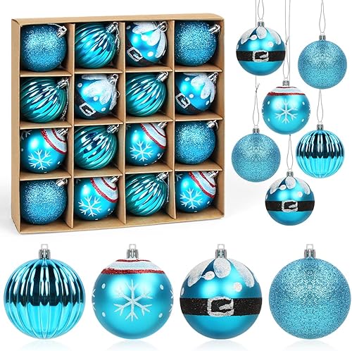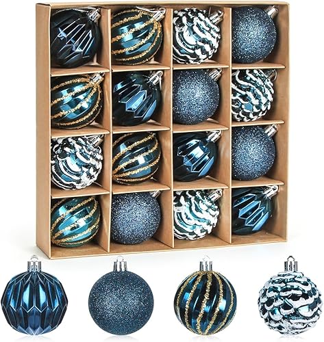 Meleager Boules de Noël Bleu Foncé, Peint Boule Noel 6cm, Boules Sapin de Noël Geantes, Peint Texture Givré Briller, 16PCS Décoration de à Suspendre Plastique, Festival Décors