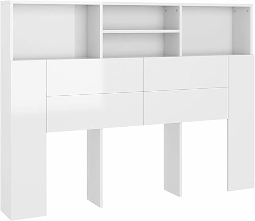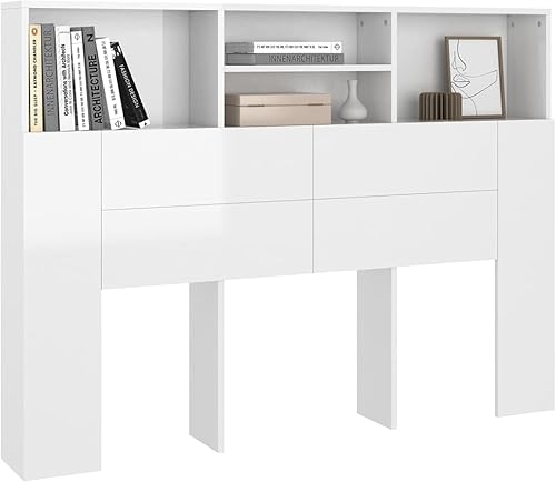 DJEKA tête de lit avec Rangement 140 Tete de lit 140 cm Bois têtes de lit pour Adulte-Blanc brillant-140x19x103,5 cm