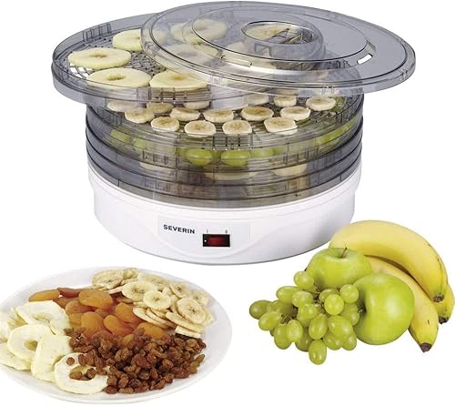 SEVERIN Déshydrateur 250 W, Déshydrateur de fruits, légumes, condiments et viandes, Grand déshydrateur alimentaire avec 5 plateaux empilables à hauteur réglable et couvercle, OD 2940