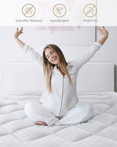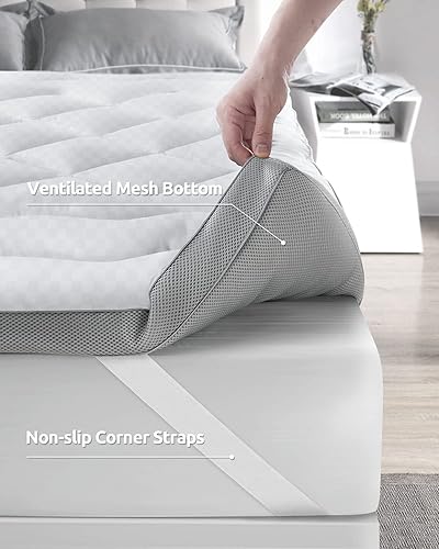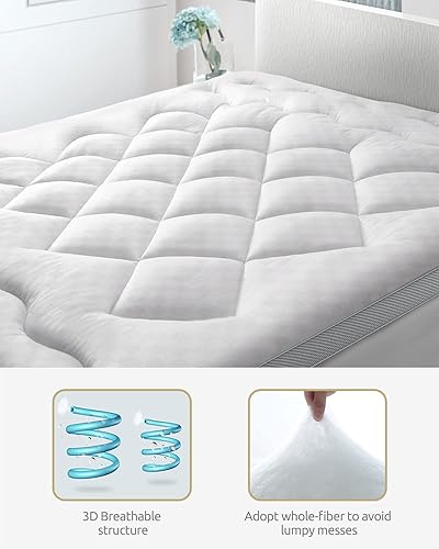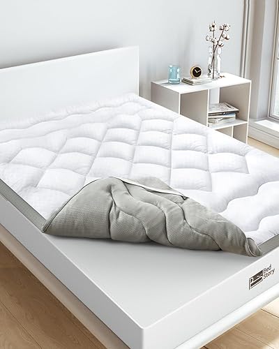 BedStory Surmatelas matelassé Doux et Moelleux avec Rembourrage en Fibre entière 3D, 6 cm d'épaisseur, rafraîchissant, Sangles d'angle Larges antidérapantes (90 x 190 cm, lit Simple)