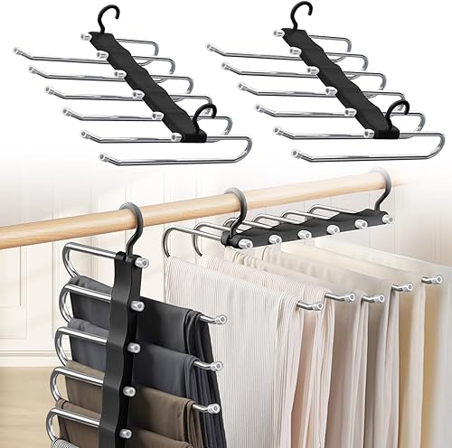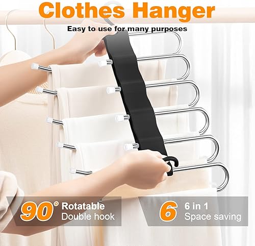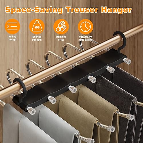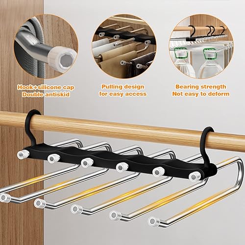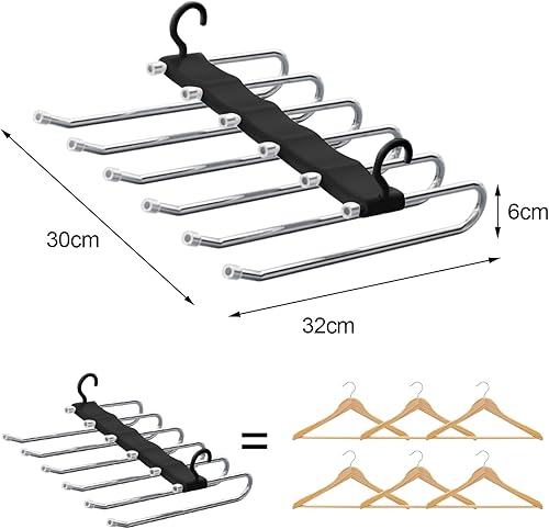 Sternstunde 6 en 1 Cintre Pantalon Gain De Place, Porte Pantalon Coulissant, Ceintres, Cintre Multifonctionnel Crochet Hook, Rangement Pantalon
