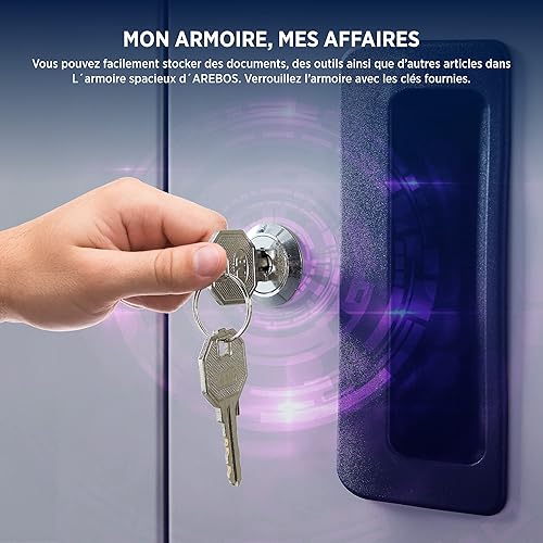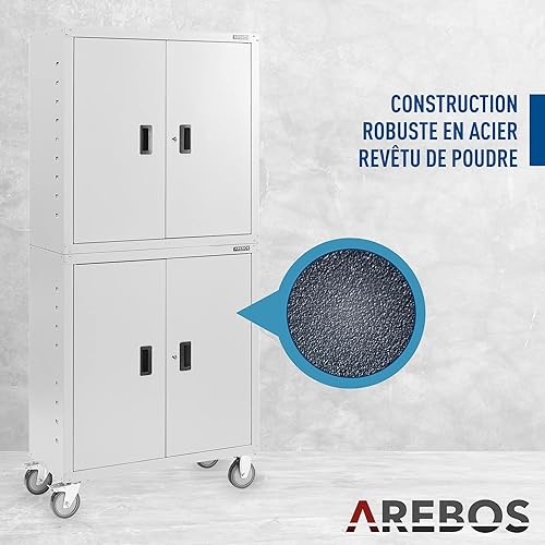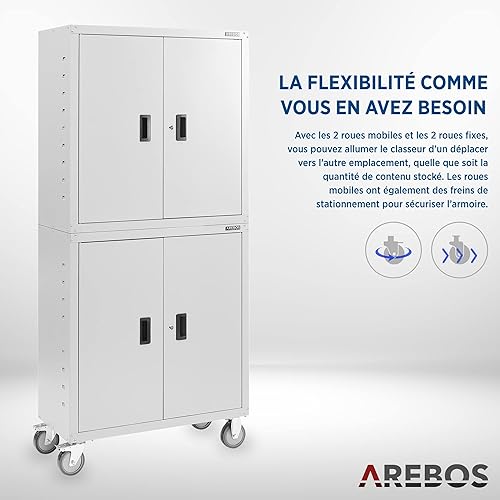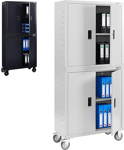 AREBOS Meuble de Bureau | Gris | 195 x 40 x 90 cm | Lot de 2 | 4 Portes | avec roulettes | Tablettes réglables en Hauteur | avec Serrure à Cylindre