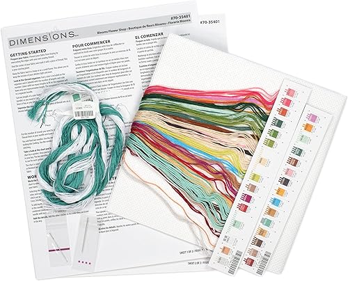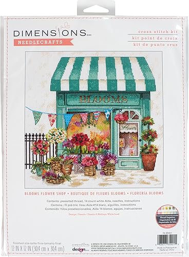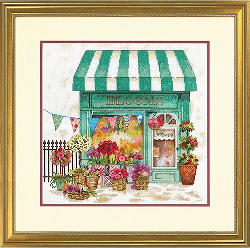 Dimensions Blooms Flower Shop Kit de Broderie au Point de Croix Motif Aida Blanc 14 carats, Multicolore, Finished Project 12' x 12'