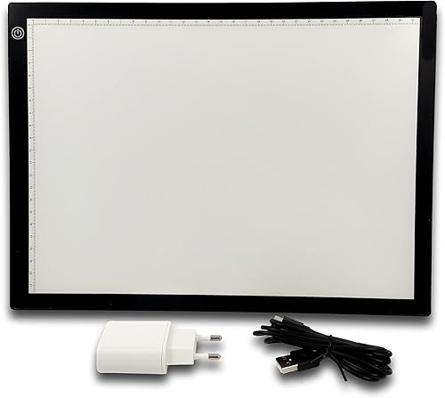 JCLIGHT Tablette de lumière Dessin. Table de lumière LED extra plate parfaite pour le calcaire, le dessin et les jeux avec des matériaux translucides (A4)
