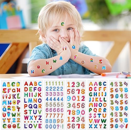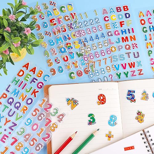 TIESOME Lot de 12 feuilles d'autocollants pour enfants - 200 pièces - Visage 3D - Lettres autocollantes - Lettres - À coller soi-même - Pour garçons et filles - Bricolage - Scrapbooking