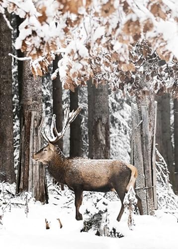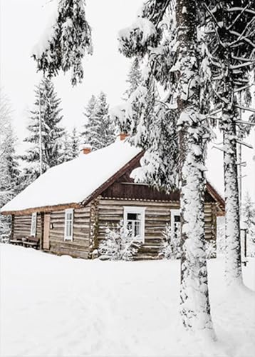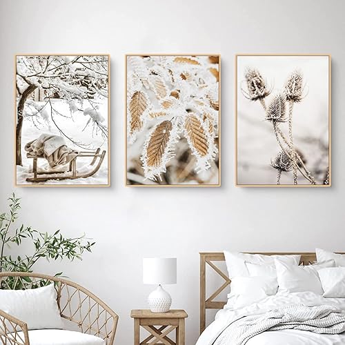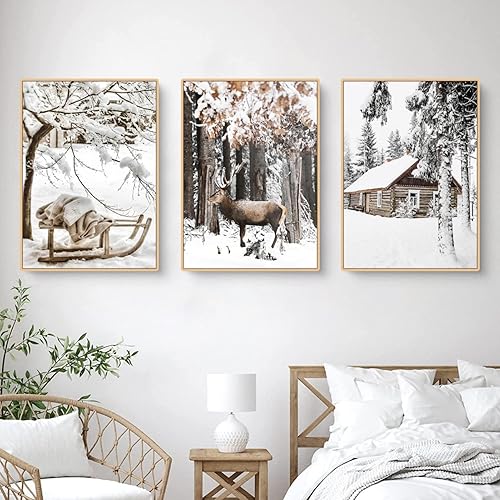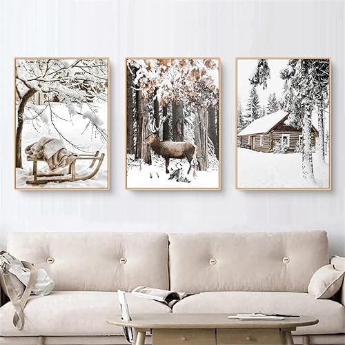 TROYSINC Lot de 3 posters de qualité supérieure - Images d'hiver, élan, maison en bois, forêt - Art mural sur toile - Impression moderne - Décoration murale pour le salon - Sans cadre - A, 30 x 40 cm