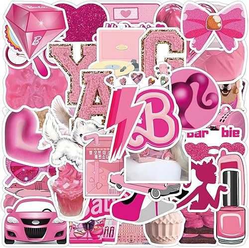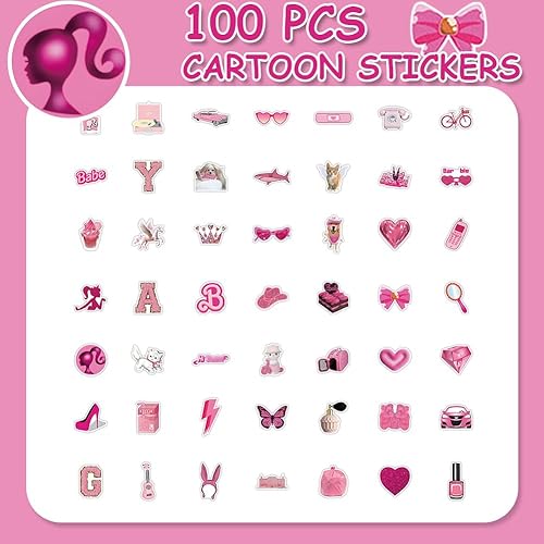 2 X 50 Pièces Rose Autocollants Bar-bie, Autocollants de Dessins Animés pour Barbi, Autocollants Esthétiques, Autocollants de la Série Rose, Mignon Sticker pour Enfants, Bouteille D'eau, Bagages
