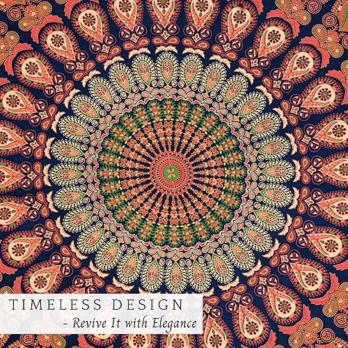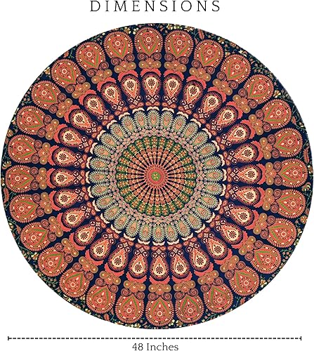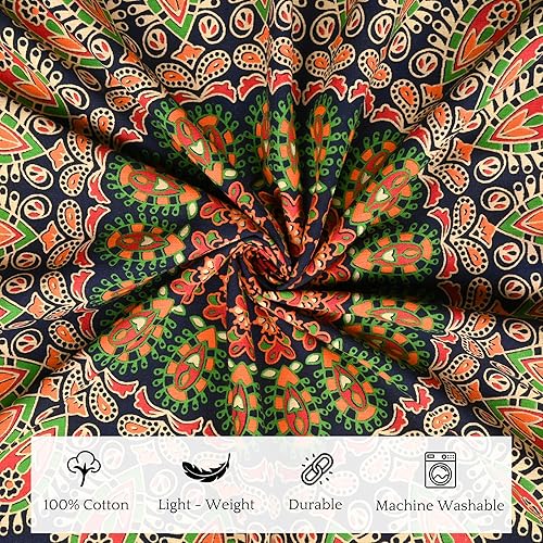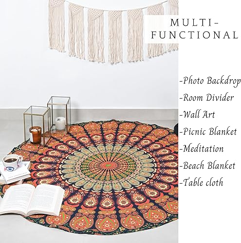 RAJRANG Tapisserie ronde paon mandala vert doré bohème en coton à suspendre au mur, nappe, jeté de plage, 122 cm