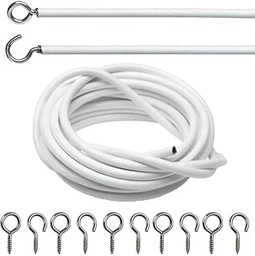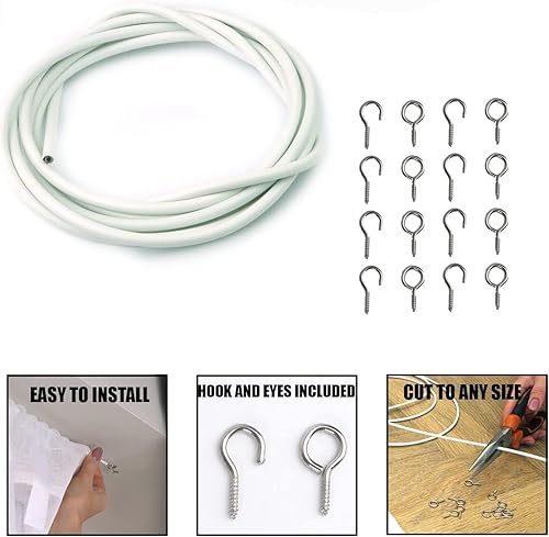SO USEFUL 2/3 mètres de fil de rideau avec 8 paires de crochets et œillets pour tringle à rideaux (3 m)