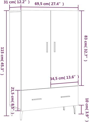 vidaXL Buffet Haut, Armoire Latérale avec Pieds et Portes, Meuble de Rangement, Organisateur de Salon Intérieur, Moderne, Gris Béton Bois d'Ingénierie
