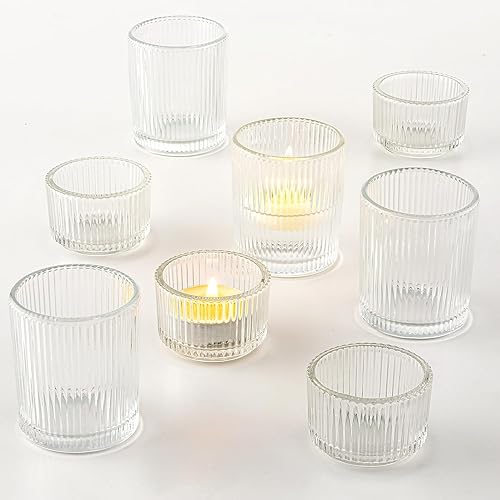 Romadedi Photophore Bougeoir Bougie Verre:Lot de 8 Transparent Bougeoirs Support pour Bougies Chauffe-Plat pour Décoration Centre De Table Mariage Fête Dîner Salon Maison Deco