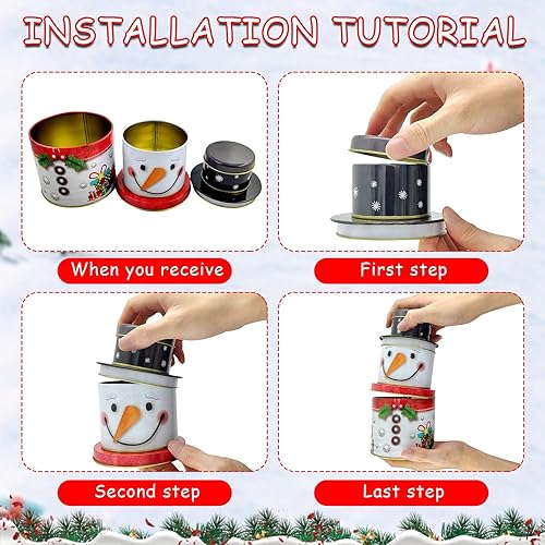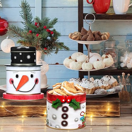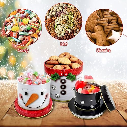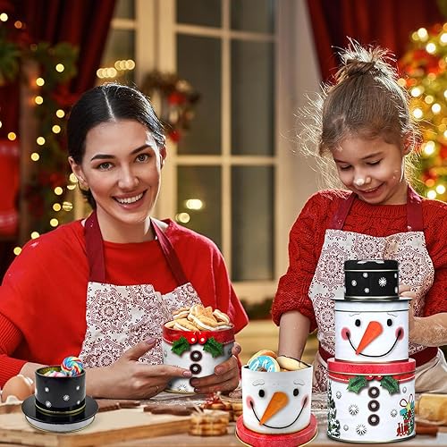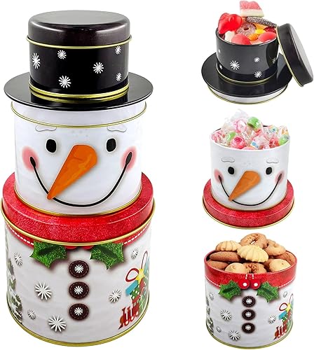 SHOWHEEL Lot de 3 boîtes à biscuits 3 en 1 pour Noël, bonhomme de neige, boîtes à biscuits en métal, à trois étages, boîtes de conservation pour bonbons, chocolat, cookies pour l'hiver, l'Avent et
