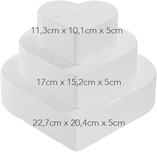 Ideen mit Herz Gâteau en polystyrène en forme de cœur | 3 plateaux en polystyrène en forme de cœur | Petit : 11,3 x 10,1 cm | Moyen : 17 x 15,2 cm | Grand : 22,7 x 20,4 cm | Hauteur : 5 cm