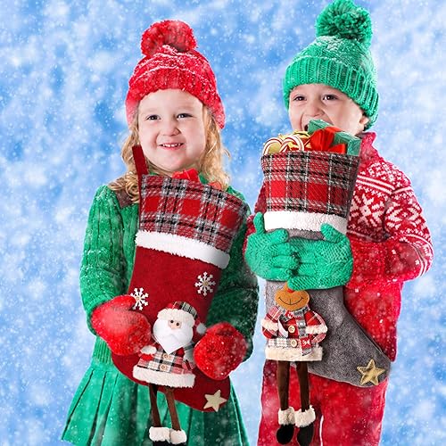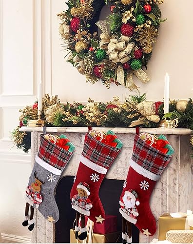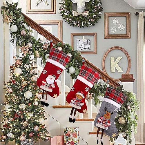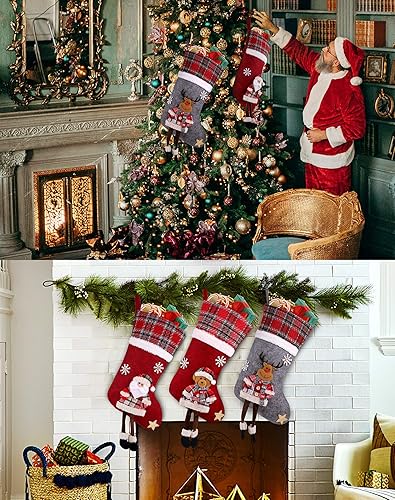CACOE Chaussettes de Noël, 3 lot Sac Cadeau de Noël Cadeau de décoration Ours, élan, Père Noël Ornement Sac de Bonbons Bas de Décoration de Noel