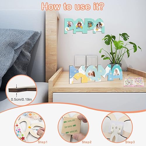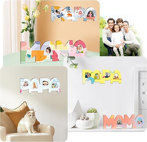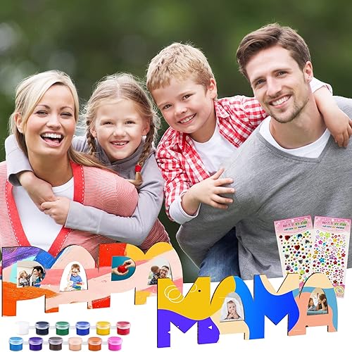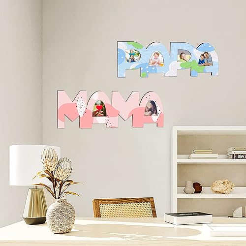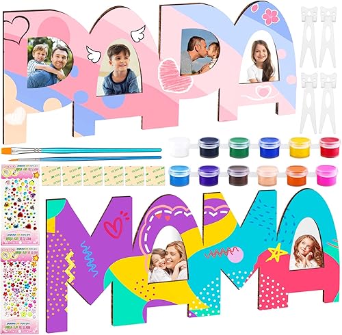 Shinybox Lot de 2 lettres en bois pour papa et maman - Kit de bricolage - Lettres en bois pour maman et maman - Kit de bricolage - Nom du bois - Peinture et collage de photos - Cadeau de Noël