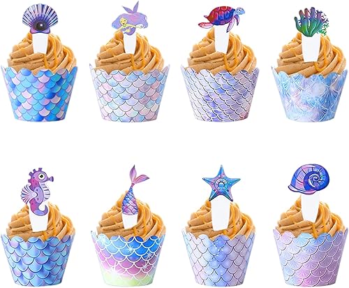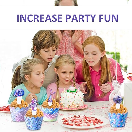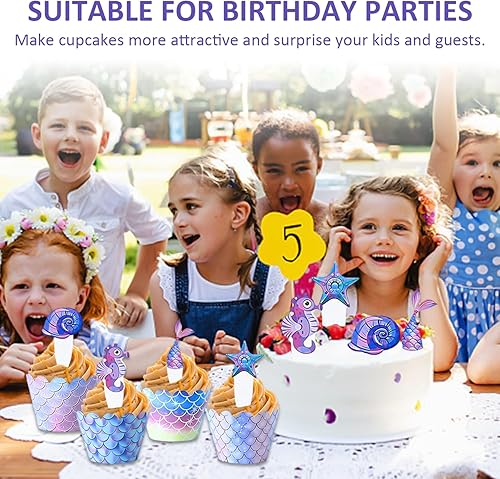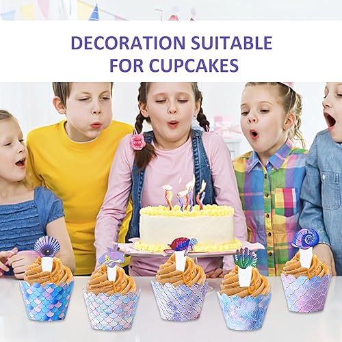 Lot de 96 décorations de dessert, décorations de fête sur le thème du fond marin, accessoires d'emballage de cupcake, décoration de gâteau sirène, convient pour les anniversaires et les anniversaires