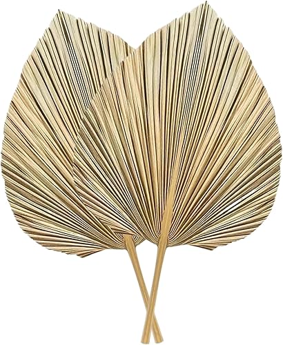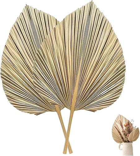 CUCUFA Feuilles de Palmier séchées, 2pcs Ventilateurs de Palmier séchés, Bouquet Fleurs 17, 7x9, 8 Pouces, Feuille Boho pour Le Mariage