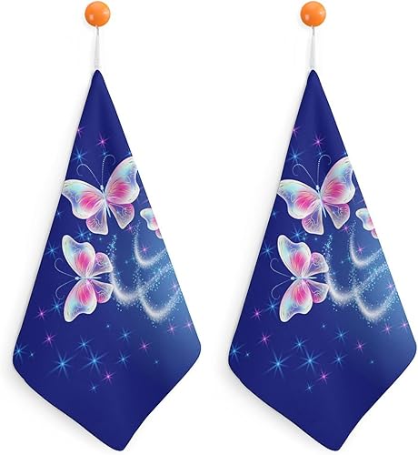 FZRTGOP Papillon Essuie-Mains Doux Absorbant Lot De 2 Serviette De Toilette pour Cuisine Salle De Bain 30cm