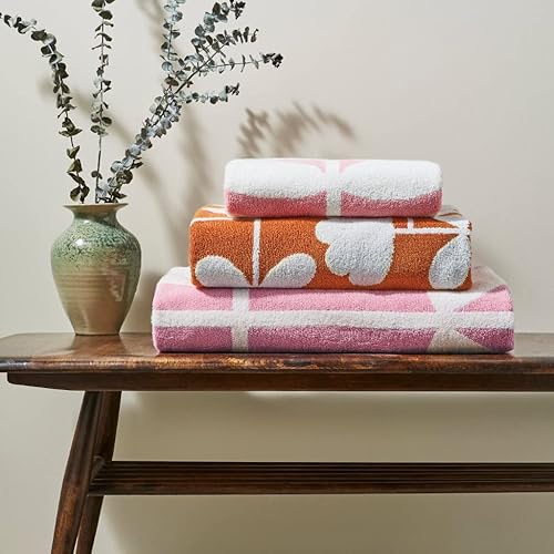 Orla Kiely Serviette de bain à tige coupée Rose tulipe et paprika 100 % coton (serviette de bain 70 cm x 125 cm)