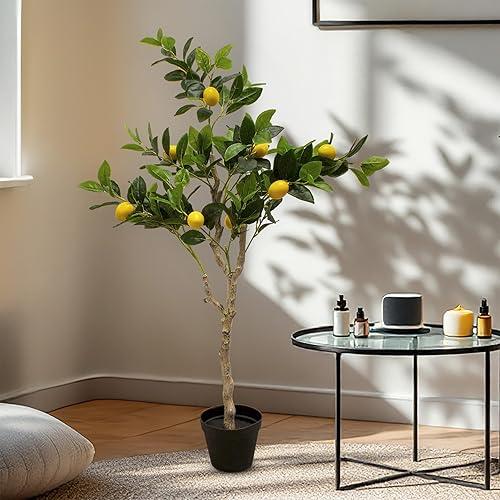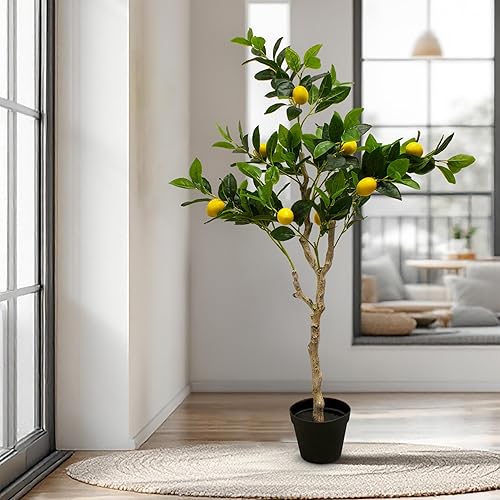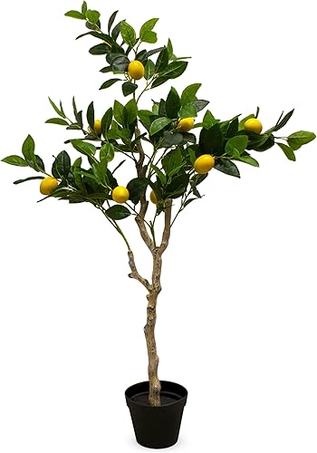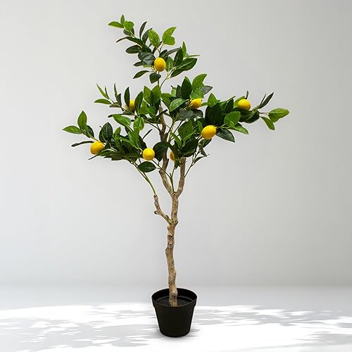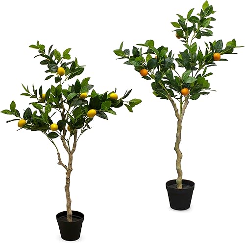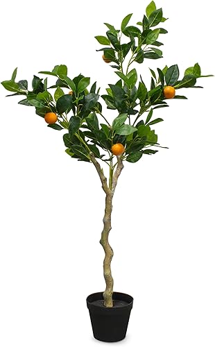 Plante d'oranger artificielle dans un pot noir – 118 x 40 cm – Arbre artificiel dans un pot de fleurs avec 10 oranges – Orange – Plante décorative d'intérieur – Pommier comme de vrai