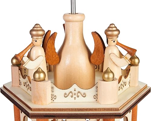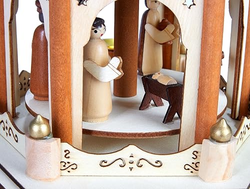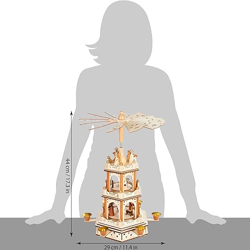 BRUBAKER Pyramide de Noël - Pyramide Tournante en Bois à 3 Étages - Décoration de Noël avec 3 Étages et Ailes d'Étoiles en Bois - 45 cm de Hauteur - Personnages Peints à la Main Noël - Nature Marron