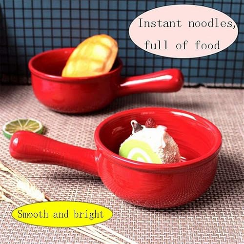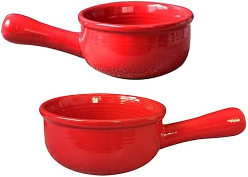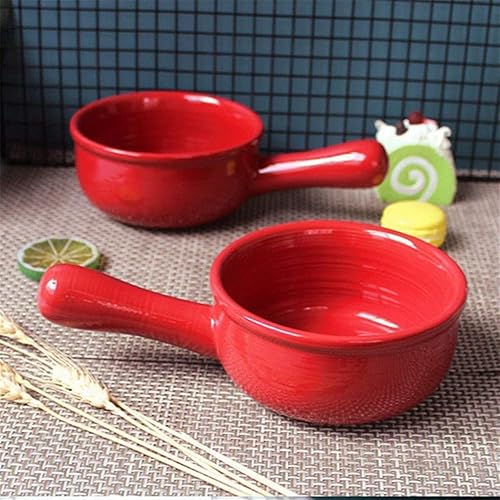 YXUANYZNB Bols à soupe à l'oignon français avec poignées, pots en céramique durables, adaptés pour la soupe, le piment, le ragoût de bœuf, le muesli, rouge || 2 pièces