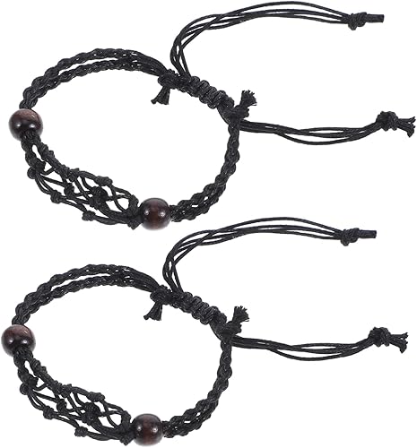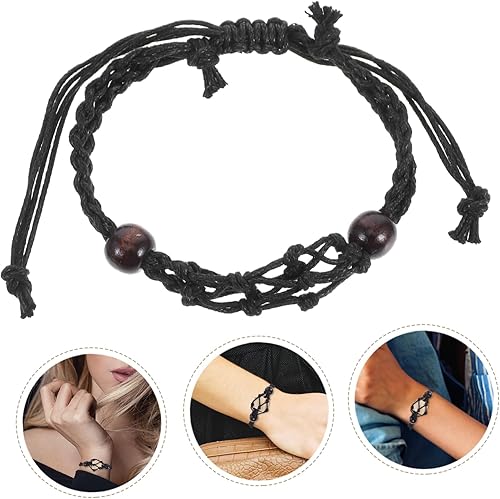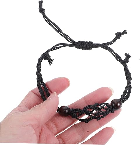 DOITOOL 2 Pièces Bracelet en maille tissée bracelet porte-breloque porte-breloques pour bracelets titulaire de cristal bracelets à cordon vide corde de cire Black
