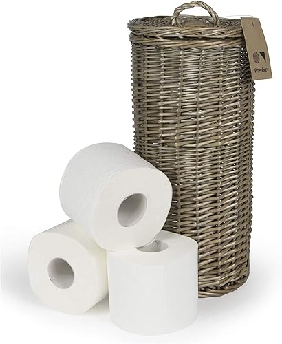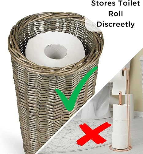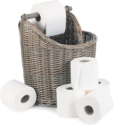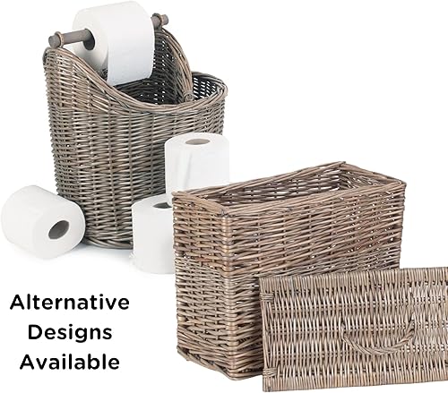 Panier à rouleaux de papier toilette en osier - Saule antique - Peut contenir 3 rouleaux de papier toilette traditionnel - Petit panier de rangement pour salle de bain