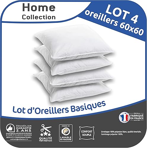 Bleu Câlin Home Collection Lot de 4 Oreillers Moelleux Economiques - 60x60cm