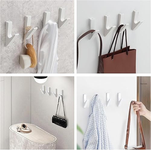 Prmape Crochet Mural Moderne, 4 Pièces Crochet Porte Manteau Mural, Patere Murale Salle de Bain Blanc, Crochets Muraux Alliage d'Aluminium pour cuisine, halls et couloirs (MAX 20KG)