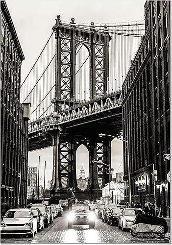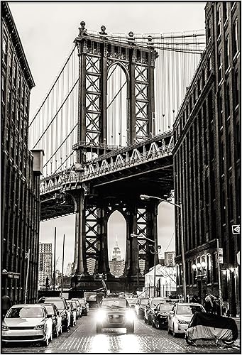 Panorama Tableau Pont de Manhattan à New York 21x30 cm - Impression sur Toile avec Châssis en Bois - Affiches Décoratives pour la Maison