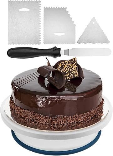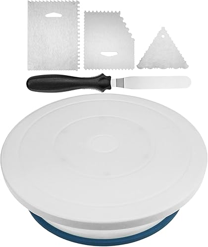 PrimeMatik - Base tournante pour gâteaux de 28 cm avec 4 spatules. Plateforme rotative blanche