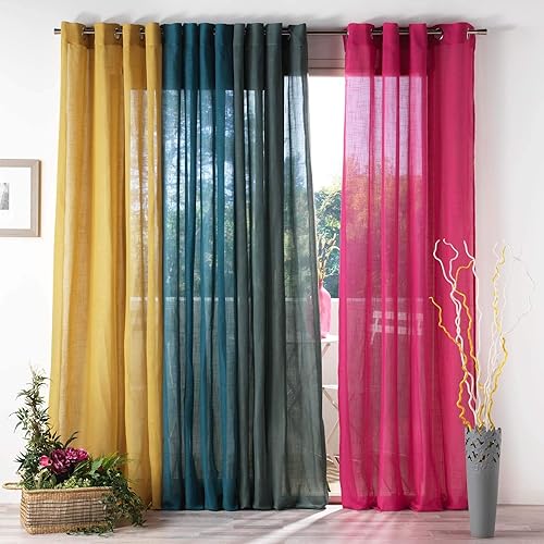 Douceur d'Intérieur, Voilage à Oeillets (140 x 240 cm) Zazy Rose, Effet Lin Tissé