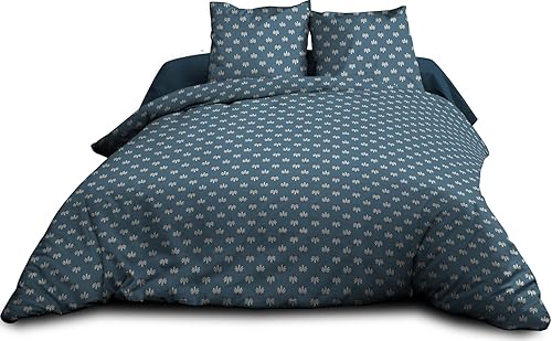 Le linge de Jules Parure Drap Plat + Drap-Housse 160x200 + 2 T - Pur Coton 57 Fils - Alya, Bleu