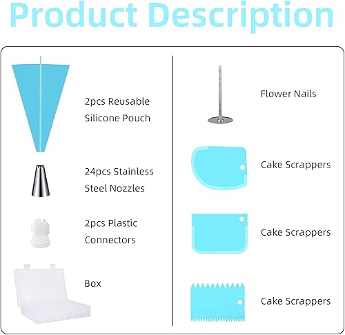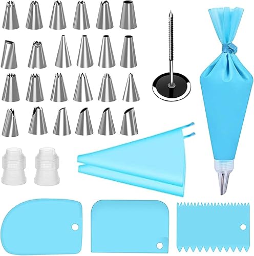 33 Pièce Douilles Pâtisserie,Piping Nozzles,Base de tuyauterie réutilisables,Poche à Douille Coupler Fleur Ongles Sac a poche,DIY Kits Accessoires pour Décoration de Gâteaux.
