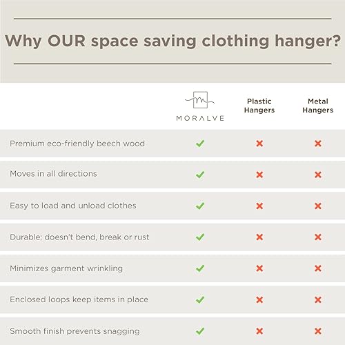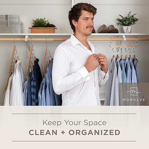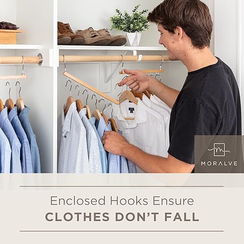 MORALVE Lot de 4 cintres peu encombrants pour armoire – Organiseur de chemises en bois de hêtre européen avec crochet pivotant à 360° – Cintres pliables pour économiser de l'espace et organiser votre