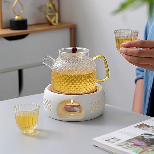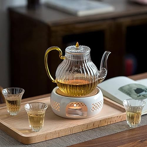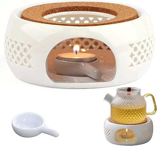 Réchaud en céramique pour théière, théière avec coussin en liège/bougeoir, design creux sculpté, chauffe-café peut chauffer la théière et maintenir la température