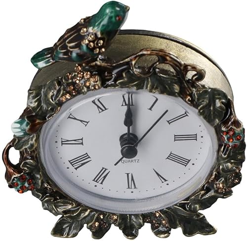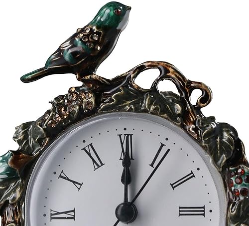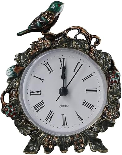 Benytro Horloge de table analogique rétro avec oiseaux en émail pour salon et chambre à coucher