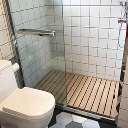 Zhaomi Caillebotis de Douche de Bain Polyvalent,Caillebotis de Douche Bois,Tapis de Pédale en Bois,Tapis Antidérapant,Tapis en Bois pour Baignoire,pour Sol de Salle de Bain (60x60cm/24x24in)