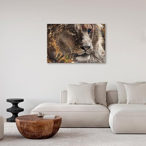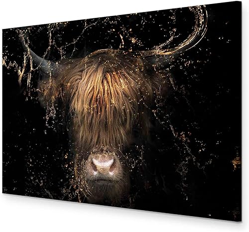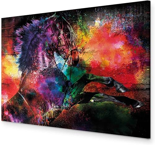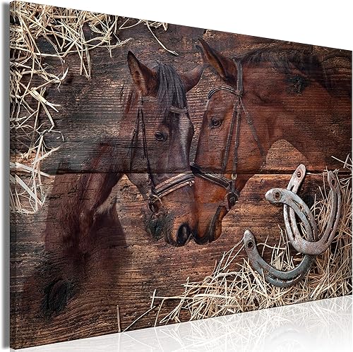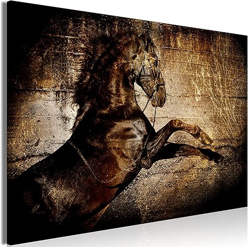 murando - Tableau décoratif animal 120x80 cm - Impression sur toile colorée - Décoration murale pour salon et chambre - Marron gris beige - Chevaux animaux texture vintage g-C-0369-b-a