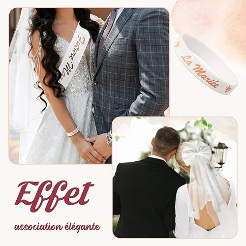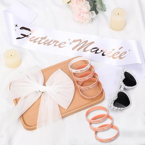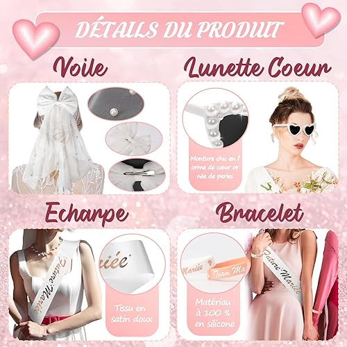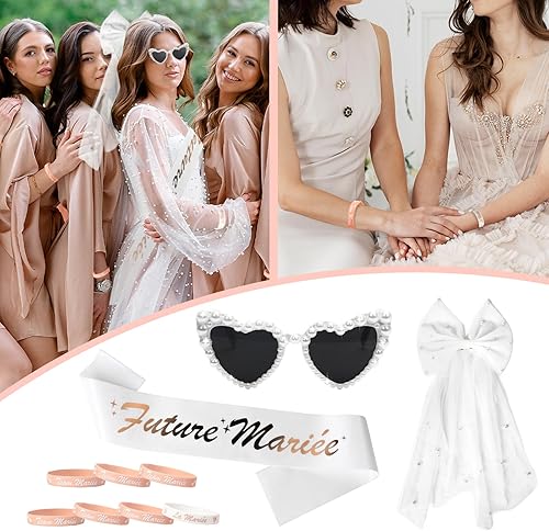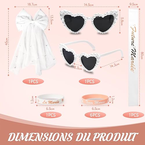 Accessoires Evjf Voile de Enterrement de Vie de Jeune Fille Voile de Mariée Blanc Perle Cheveux Arc Lunettes de Soleil Coeur Echarpe Future Mariée Bracelet Mariée et Team Accessoire Pour Fiançailles